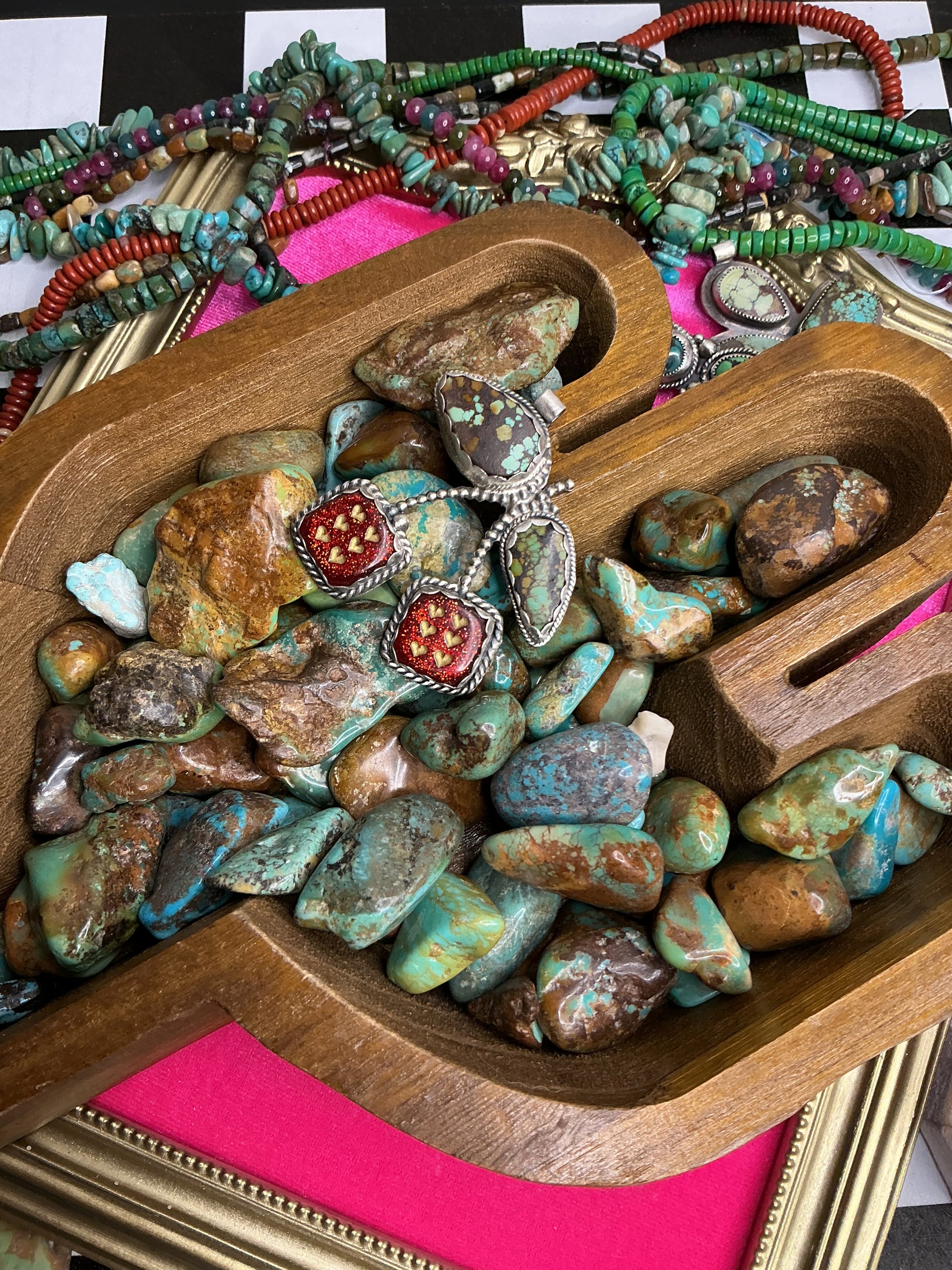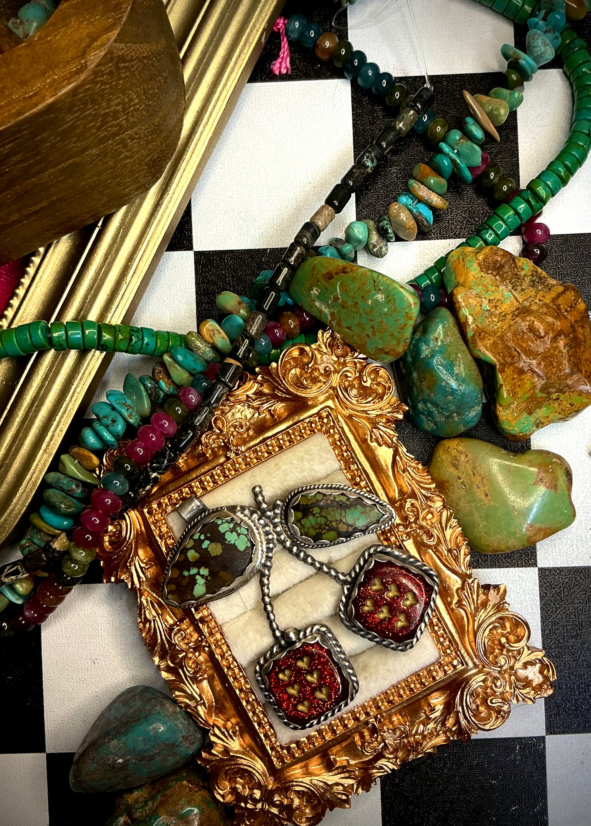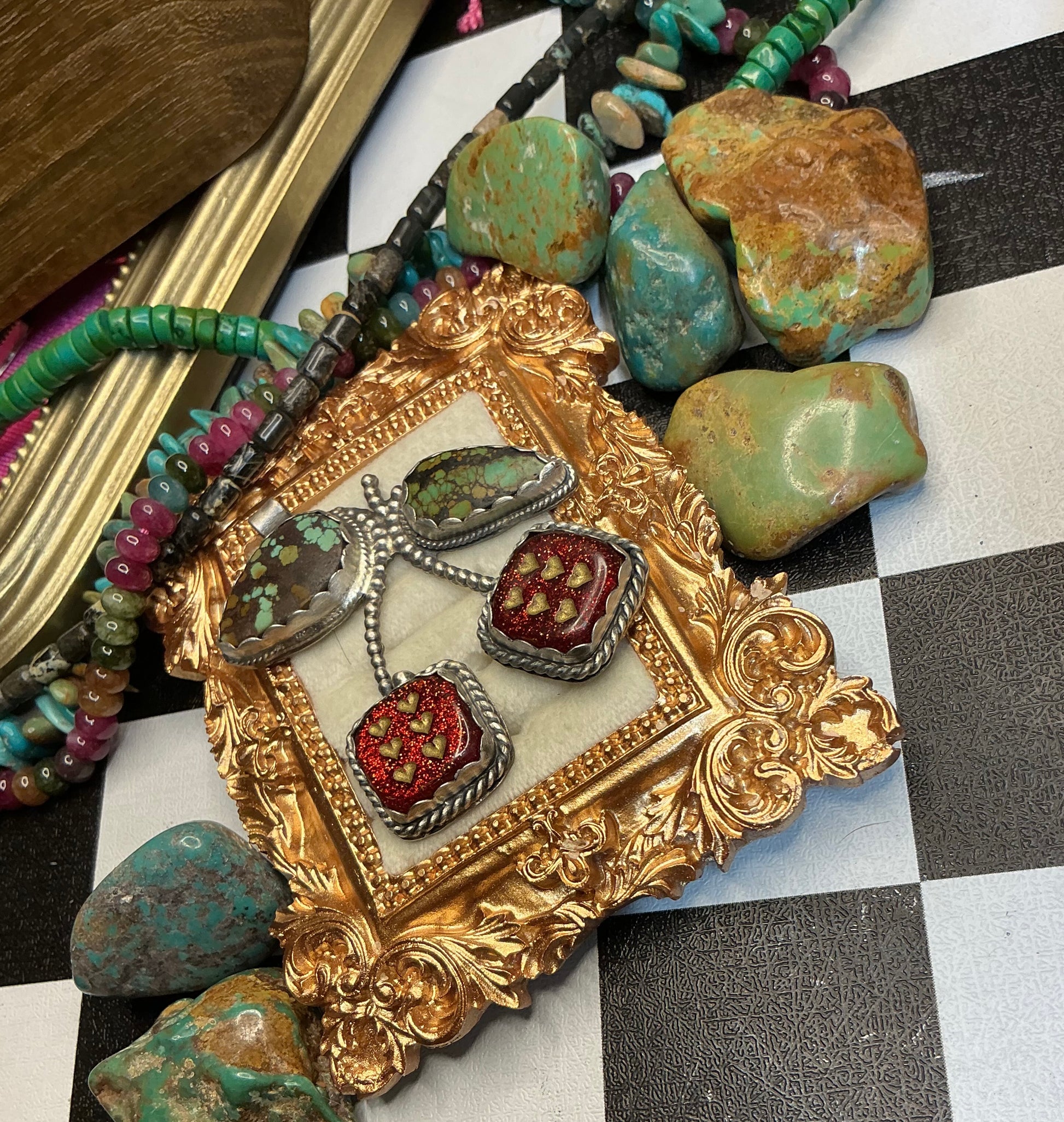 Sterling silver, Hubei turquoise and shimmer heart dice pendant